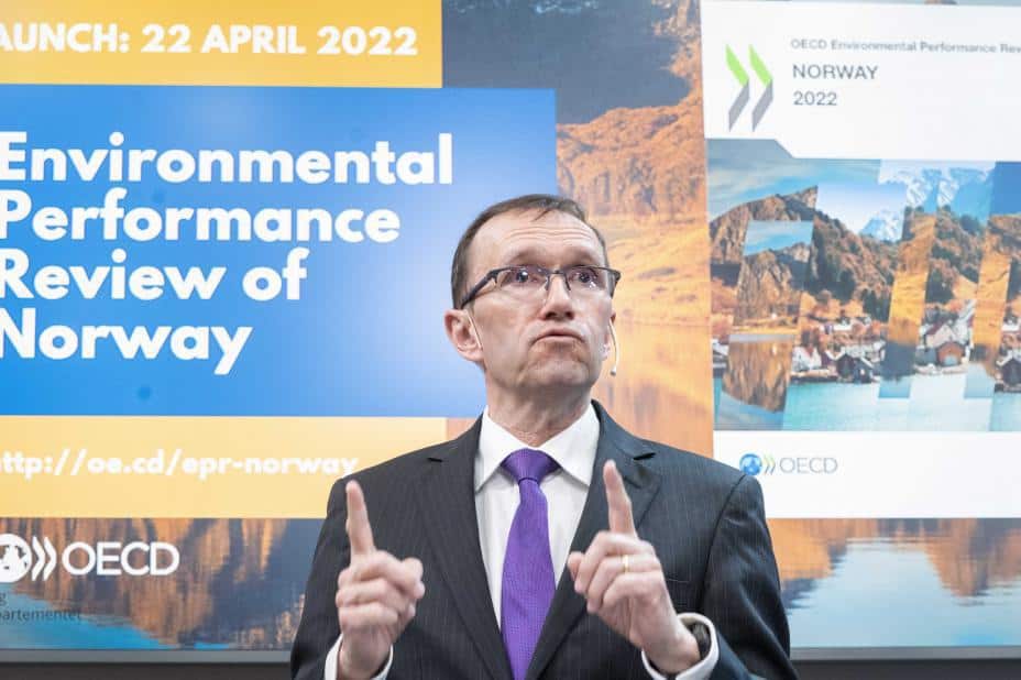 – Rapporten anerkjenner viktige norske fremskritt innen grønn omstilling, blant annet gjennom elektrifisering av transportsektoren og forsterket CO2-avgift. Samtidig påpeker den at vi har forbedringspunkter innen sirkulærøkonomi og arealforvaltning, og at vi bør få til en mer helhetlig og integrert miljøforvaltning på tvers av ulike sektorer. Dette er, etter mitt syn, kloke og riktige innspill som jeg støtter, sier han.