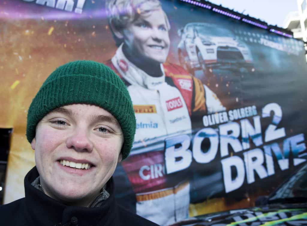 Den snart 18 år gamle sønnen til Petter Solberg fikk sin første bil da han var fem år, og den grønne bobla var blant bilene som sto utstilt foran Colosseum kino. De fremmøtte kunne også prøve å kjøre mot stortalentet i en trailer med VR-simulator.