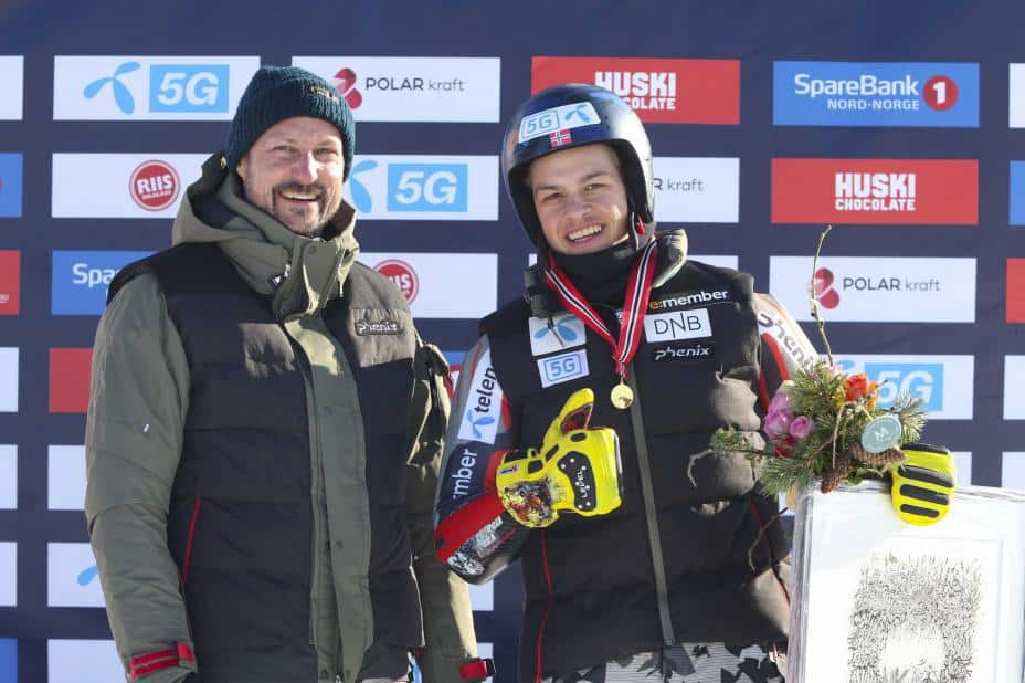 Kjelsås-alpinisten Alexander Steen Olsen (20) slo til med to kjempeomganger og tok NM-tittelen i storslalåm i Narvik.
