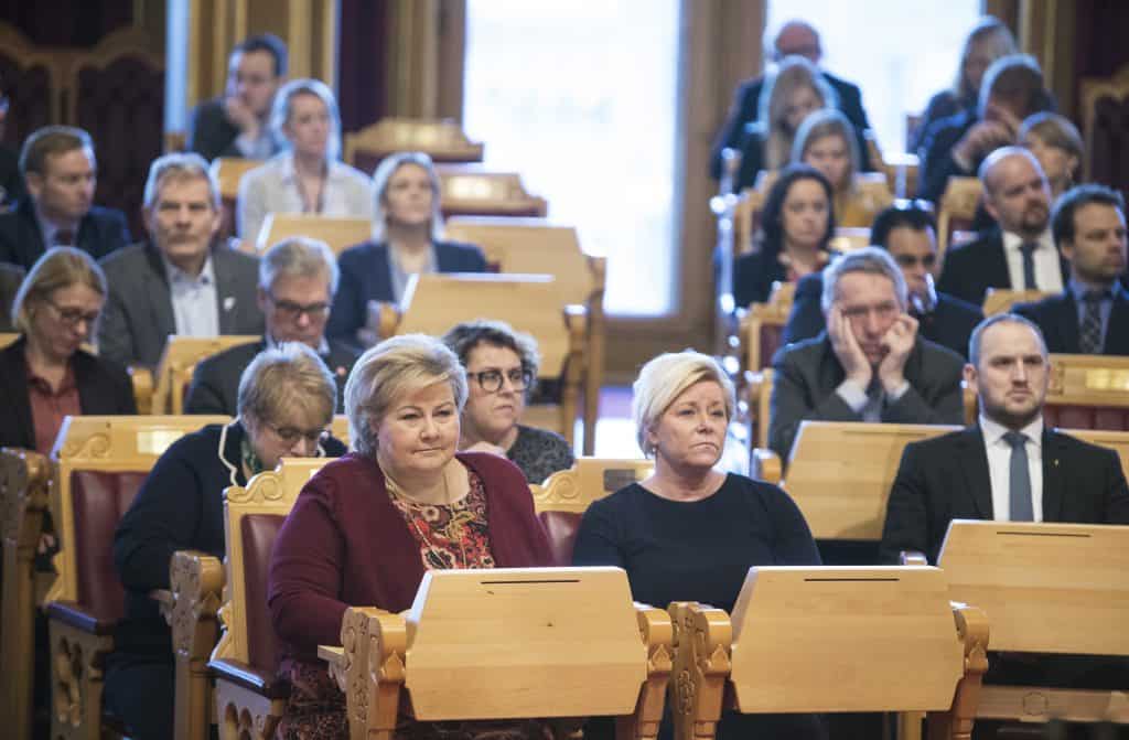 Solberg avsluttet sin erklæring med å invitere til brede flertall i noen saker – selv om landet nå har fått en flertallsregjering.