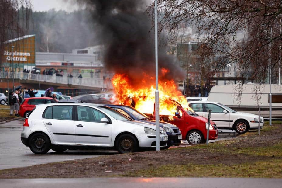 Maskerte demonstranter satte også fyr på sivile biler, og uroen spredte seg utover kvelden til Norrköping der Paludan også hadde fått tillatelse til å demonstrere i 18.30-tida.