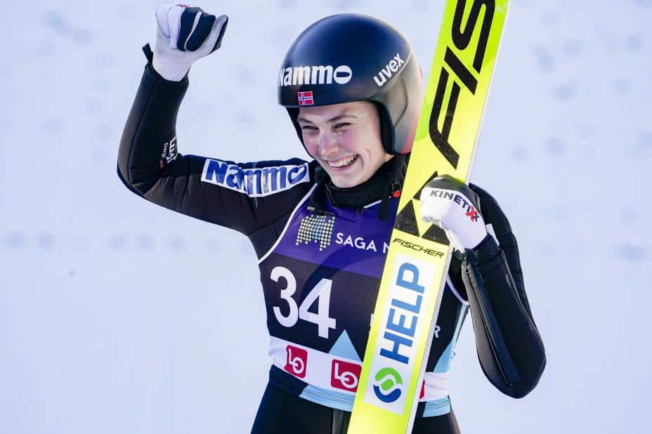 Sport: Opseth kom seg til finaleomgangen med et nødskrik søndag med 76 meter, men der fikk hun vist hva hun virkelig er god for. Holingen, som sikret seg sin første individuelle verdenscupseier i Holmenkollen tidligere i måneden, hoppet 100 meter og bykset 19 hakk.