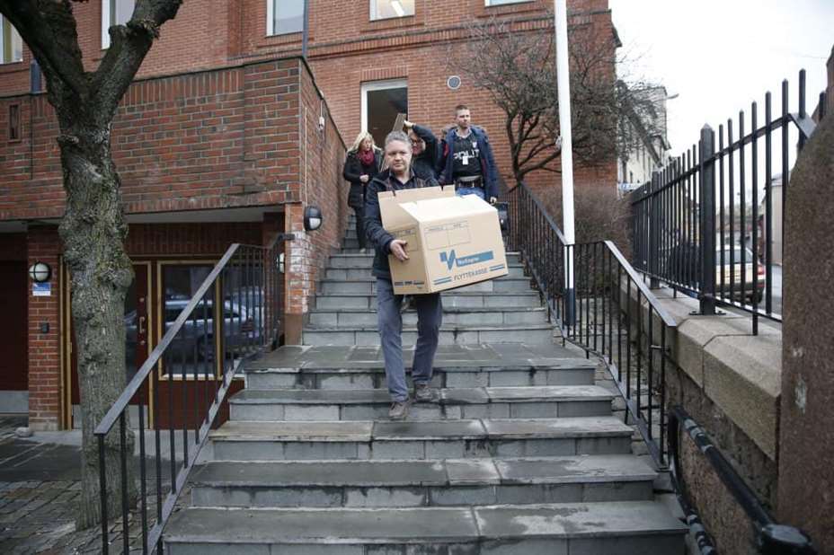 Politiet bærer ut beslag fra kontorene til Oslo katolske bispedømme i Oslo etter en razzia i 2015. Foto: Cornelius Poppe / NTB scanpix