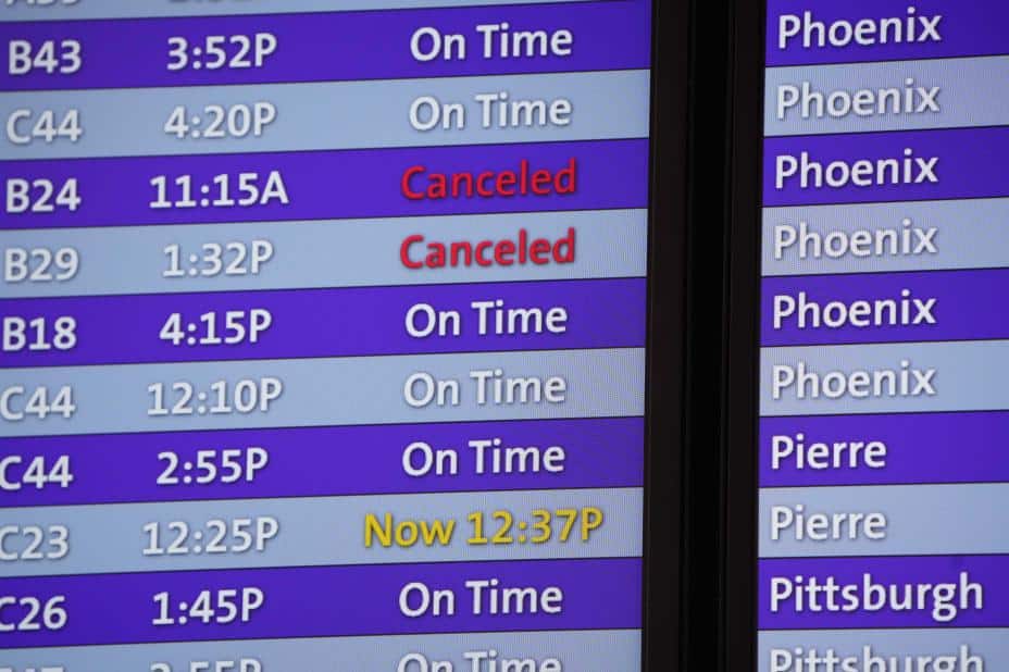 Første juledag var det fram til klokken 8.20 på morgenen registrert minst 2.000 innstilte fly i verden og over 1.500 forsinkede avganger.