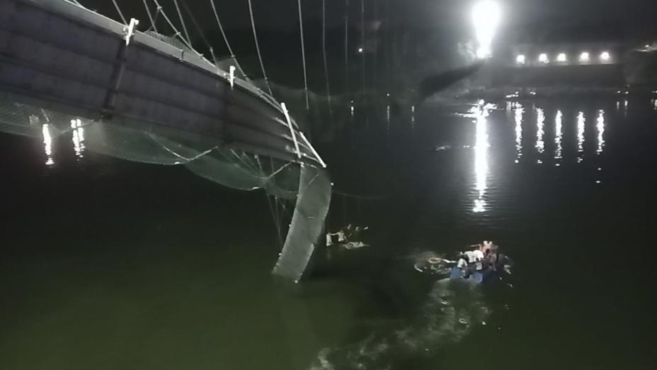 Ulykker og naturkatastrofer: Flere hundre mennesker skal ha befunnet seg på broen da den kollapset. Det er en over 100 år gammel hengebru over elven Machchhu i Morbi-distriktet delstaten Gujarat. Broen åpnet nylig etter å ha blitt renovert. Over hundre mennesker skal ha falt i elven, opplyser tjenestepersoner til lokale medier. Det er ikke kjent hvor mange som befant seg på den smale, historiske hengebroen da den raste sammen.