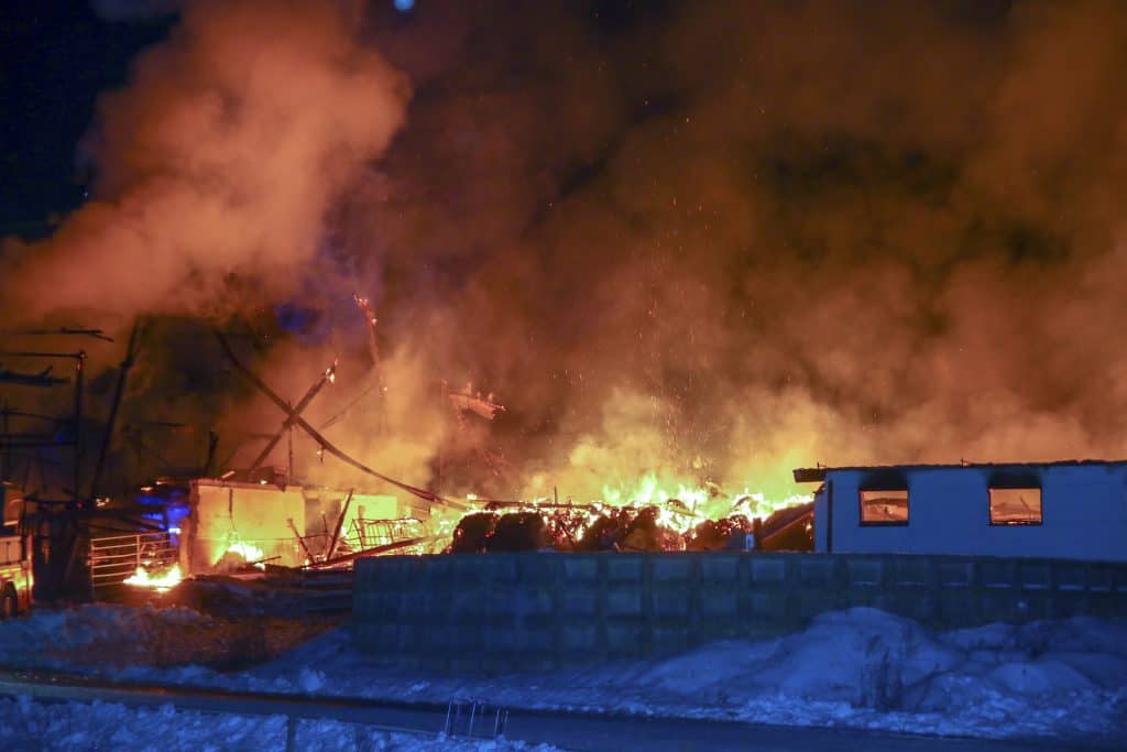Et fjøs brant kraftig i Aspsäter nord for Säffle søndag. Nesten 80 kyr døde i brannen. Foto: Bengt Andersson/TT / NTB scanpix