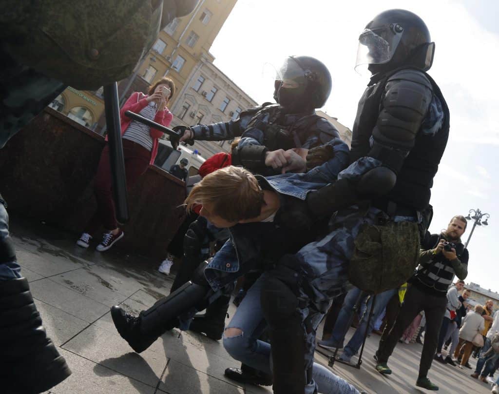 Russiske myndigheter hadde ikke gitt tillatelse til protesten. Demonstrantene krevde fritt valgt og protesterte mot at en rekke opposisjonspolitikere ikke får stille som kandidater til valget på nytt bystyre i Moskva. Enkelte av pågripelsene gikk hardhendt for seg, blant annet ble en ung syklist slått med køller mens han lå med sykkelen på bakken.