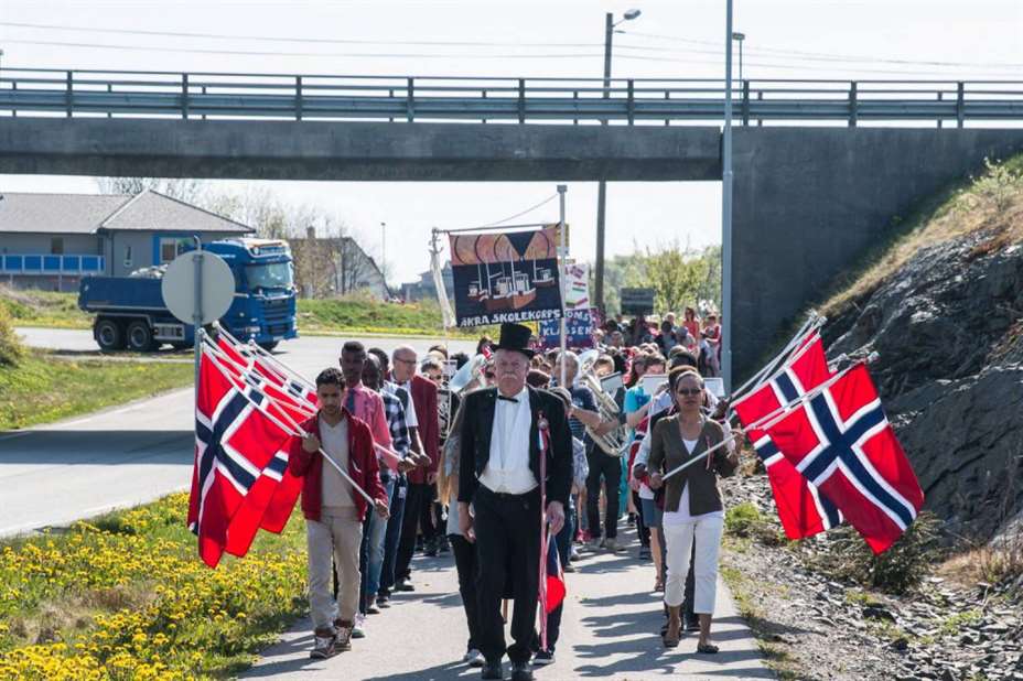 I dag har flyktninger på Karmøy gått i tog for å lære seg å feire norsk 17. mai.