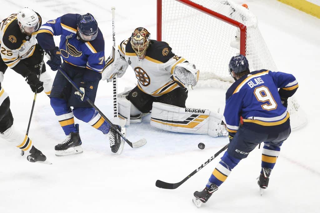 Det hjalp ikke at St. Louis fem minutter før fulltid tok ut målmannen og spilte med åpent bur. I en rask kontring kunne Noel Acciari pent skyte pucken inn og øke forspranget til 6-2.