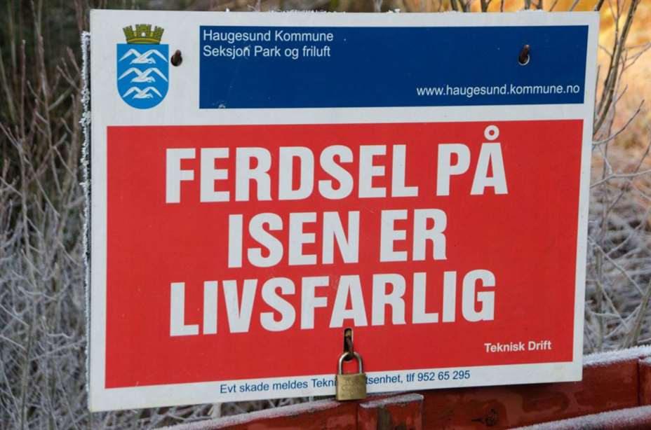 Isen er ikke trygg og Haugesund kommune har hengt opp skilter ved flere vann de siste dagene.