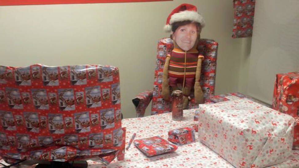 Da barnehagesjef ved Anna Nilssens Minne barnehage i Haugesund kom på jobb fredag morgen, var hele kontoret innpakket i julepapir.