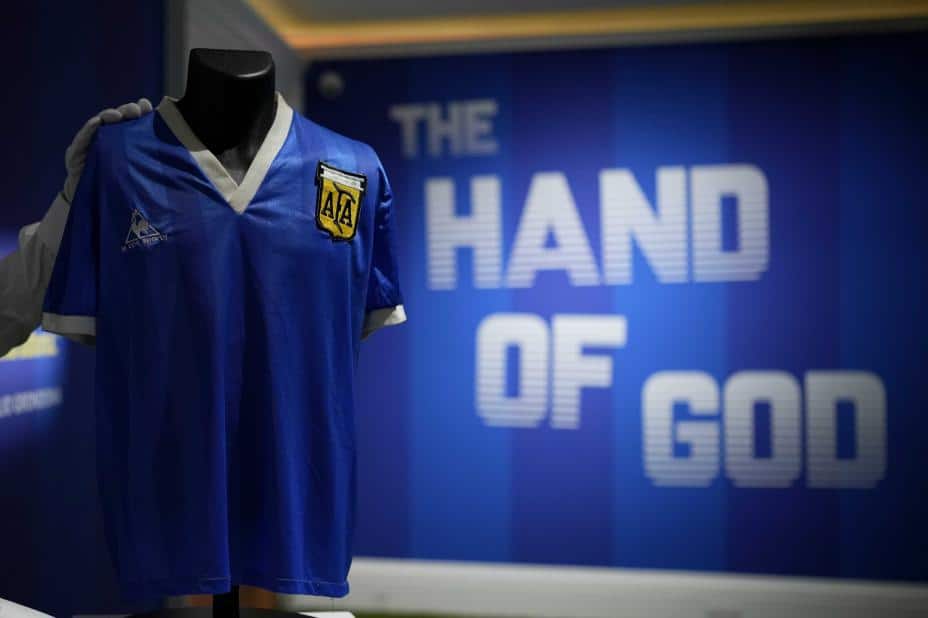 Drakten er eid av England-spilleren Steve Hodge, som sto bak den feilslåtte klareringen som endte opp med at Maradona bokset ballen over keeper Peter Shilton og i mål. Hodge fikk drakten av Maradona etter kampen.