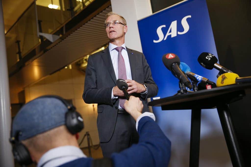 SAS-tallene i april ble som ventet svake. Konsernsjef Rickard Gustafson i SAS beklager overfor passasjerene. Foto: Fredrik Persson/TT / NTB scanpix