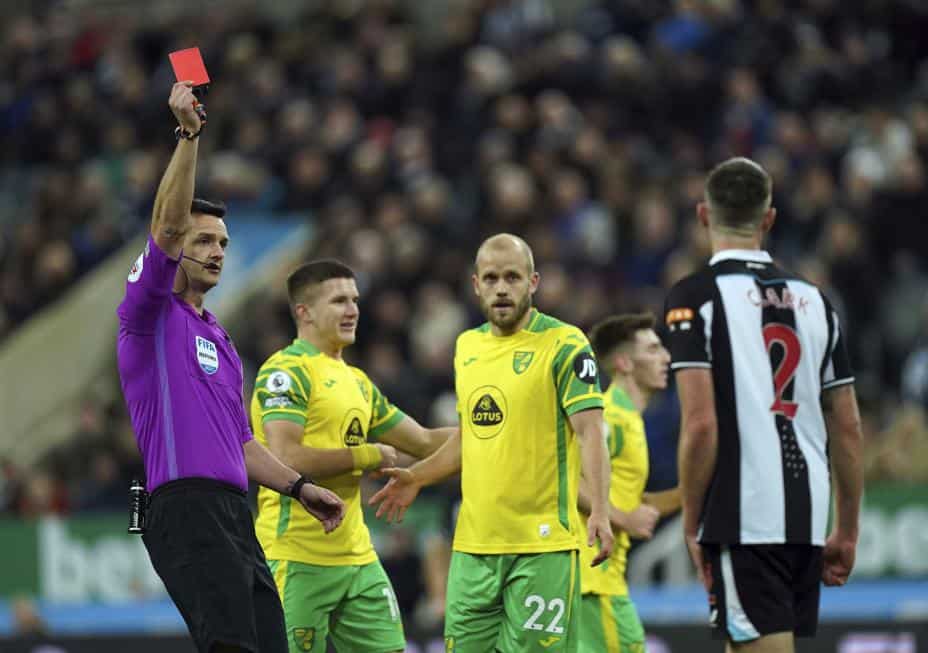 Newcastle fikk en fryktelig start. I det 9. minutt klarerte midtstopper Ciaran Clark rett i Pukki, som fikk med seg ballen og var gjennom. Clark valgte å rive ham ned og fikk direkte rødt kort. Dermed ble Clarks tredje ballberøring hans siste i kampen.
