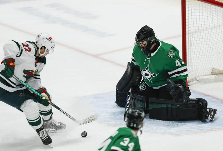 Minnesota Wild kom best i gang i kampen i Dallas. Kevin Fiala sørget for en tidlig ledelse 2.14 minutter ut i første periode. Selv om begge lag hadde flere skudd på mål, ble det med den ene scoringen før den første hvilen.