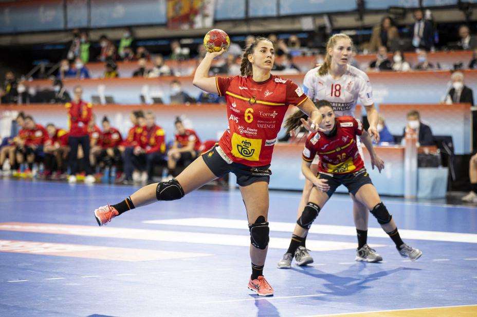 Carmen Campos scoret seks mål da Spania sikret avansement i håndball-EM med seier over Tyskland, som begrenset tapet til to mål og også er videre. Her fra VM i fjor. Foto: Beate Oma Dahle / NTB
