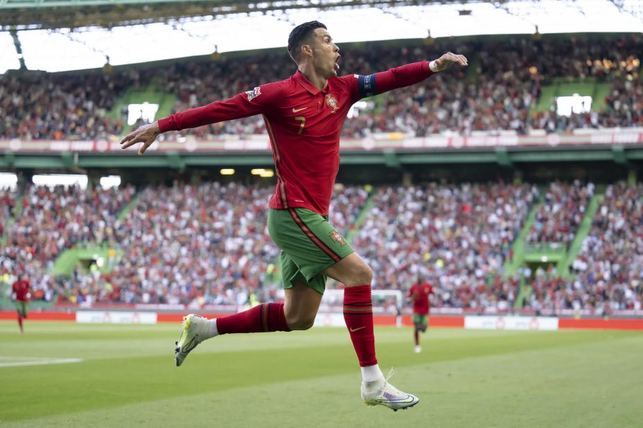 Cristiano Ronaldo scoret to ganger i Portugals 4-0-seier over Sveits søndag. Portugiserne topper sin gruppe i nasjonsligaen etter 2-2 mellom Tsjekkia og Spania.