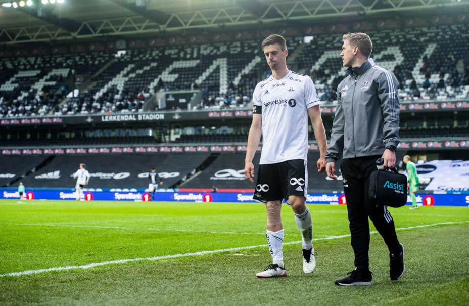 Markus Henriksen går ut med skade i onsdagens kamp mot Viking. MR-undersøkelsen viste at skaden er mindre alvorlig enn fryktet. Foto: Fredrik Varfjell / NTB