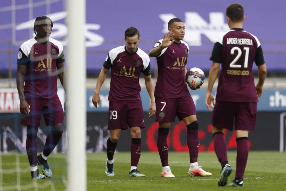 Sport: Kylian Mbappé, Pablo Sarabia, Moise Kean og Leonardo Paredes scoret målene for PSG i borteoppgjøret mot Strasbourg lørdag.