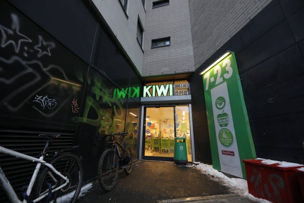 En kvinne ble knivstukket inne i denne Kiwi-butikken i Oslo i januar. En 20 år gammel russisk mann ble siktet for terror, men siktelsen blir nå endret. Foto: Fredrik Hagen / NTB scanpix