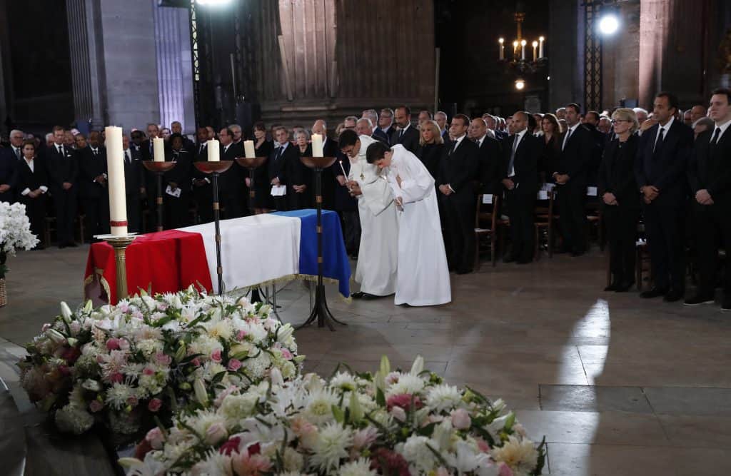 Politikk: Frankrikes president Emmanuel Macron overvar også mandagens minnegudstjeneste i kirken Saint-Sulpice i Paris. Et militærorkester fremførte nasjonalsangen «Marseillaisen» før Macron inspiserte soldatene. Chiracs kiste var dekket med det franske flagget.
