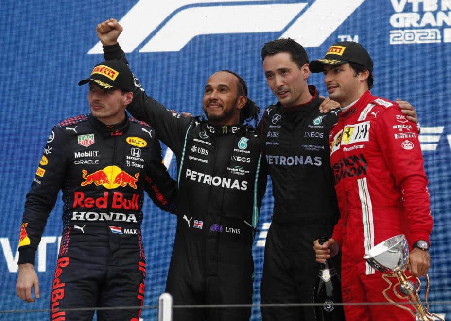 Max Verstappen (t.v.), Lewis Hamilton og Carlos Sainz (t.h) skal kjøre løp i Qatar i november. Foto: Juri Kotsjetkov / AP / NTB