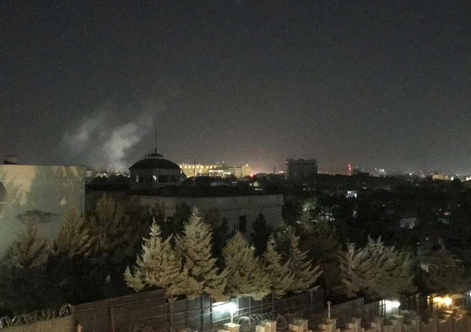 Røyk stiger opp fra et område i nærheten av USAs ambassade i Kabul. Foto: Cara Anna / AP / NTB scanpix