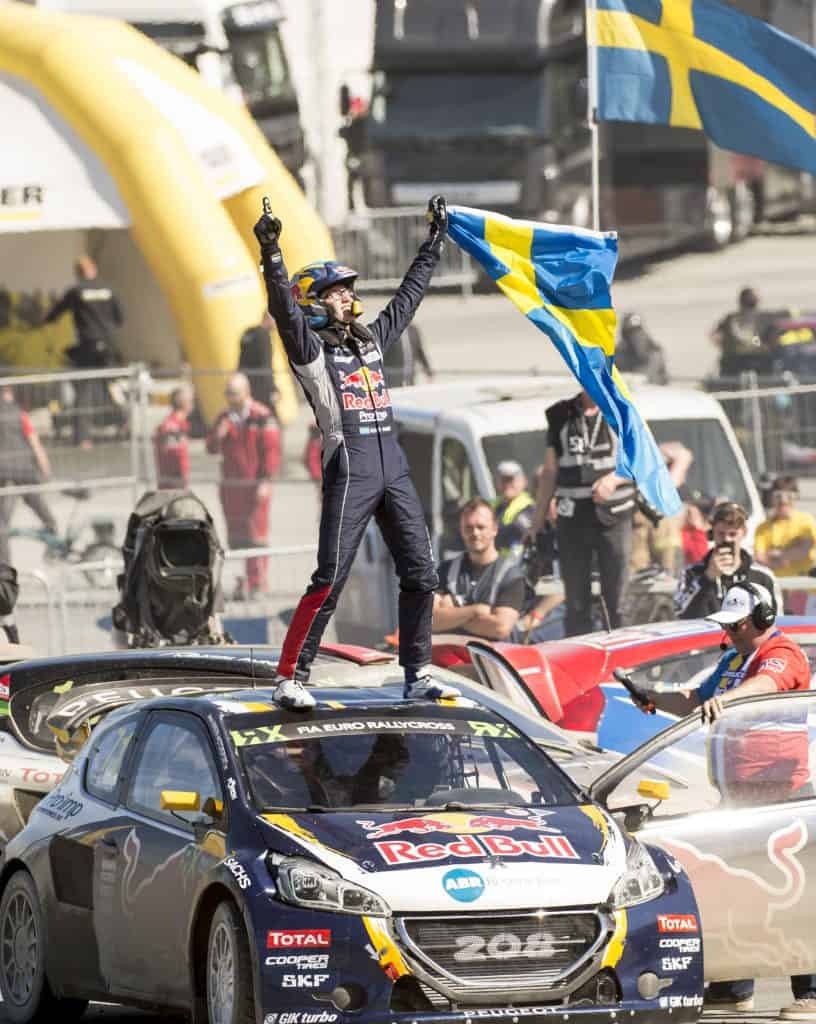 Kevin Hansen ble tildelt seieren i sesongens første VM-runde i rallycross etter at rivalen Niclas Grönholm ble ilagt en tidsstraff. Her er svensken i Stjørdal i 2016. Foto: Ned Alley / NTB scanpix