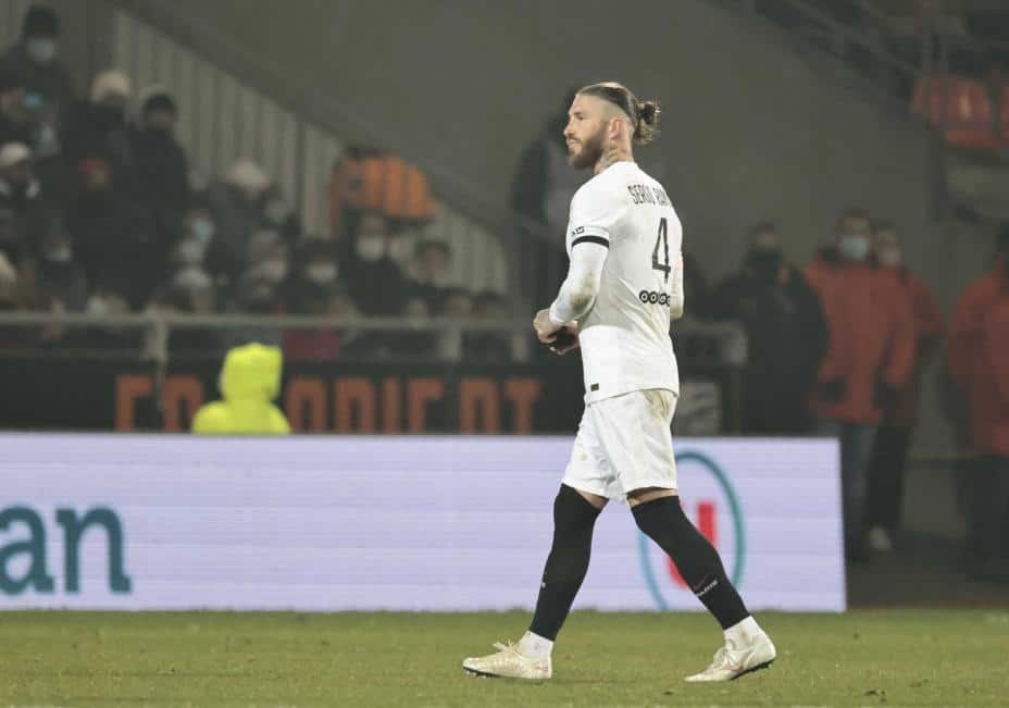 Sergio Ramos fikk spilletid for Paris Saint-Germain i årets siste kamp, men ble utvist for to gule kort da det ble bare 1-1 borte mot nestjumbo Lorient.