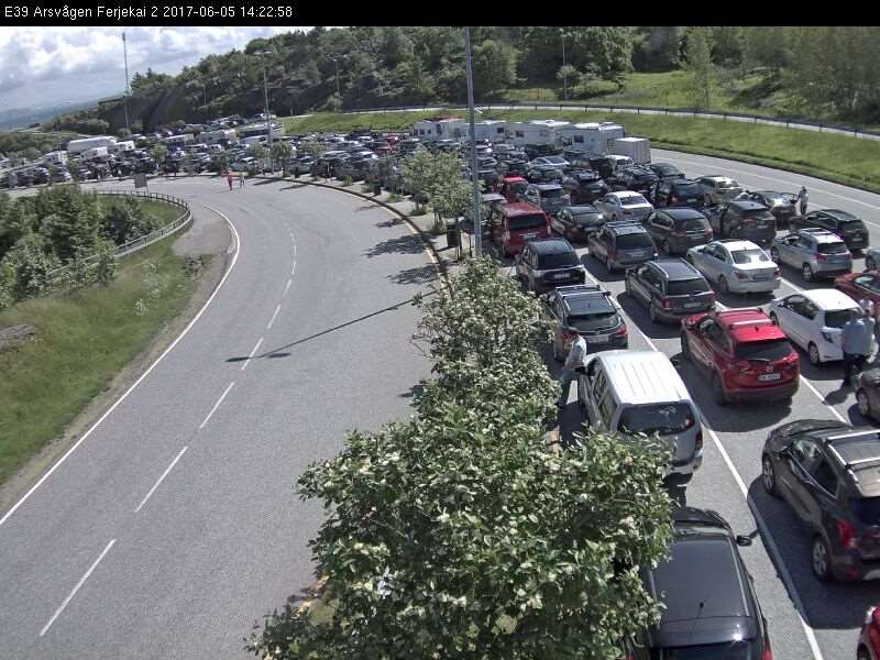Det er i dag tekniske problemer med den ene ferja som går mellom Arsvågen og Mortavika. Pinsetrafikken fører nå til lange køer.