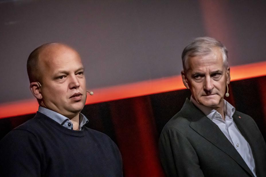 Finansminister Trygve Slagsvold Vedum og statsminister Jonas Gahr Støre varsler oppklaring om lakseskatten. Foto: Ole Berg-Rusten / NTB