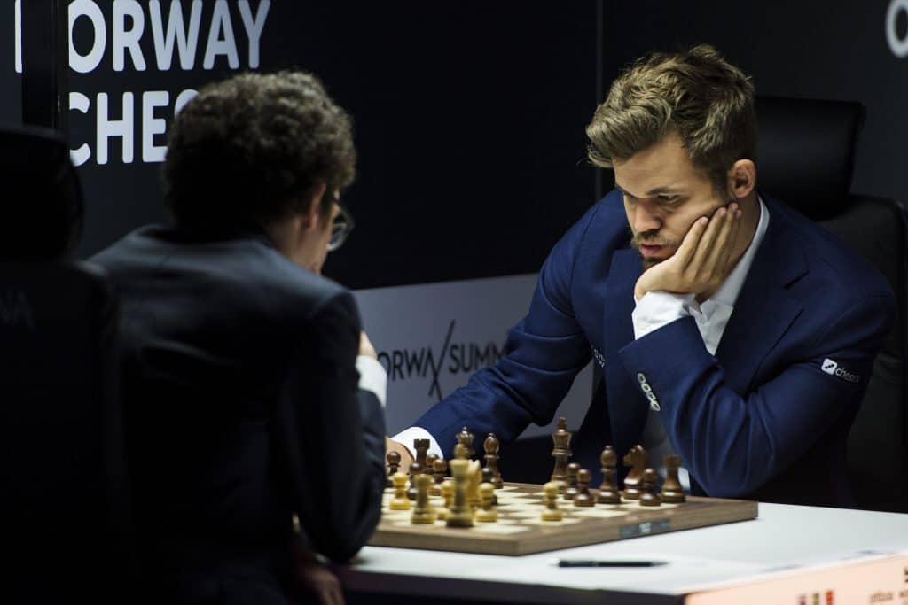 I siste runde søndag spiller den norske verdensmesteren mot Maxime Vachier-Lagrave.