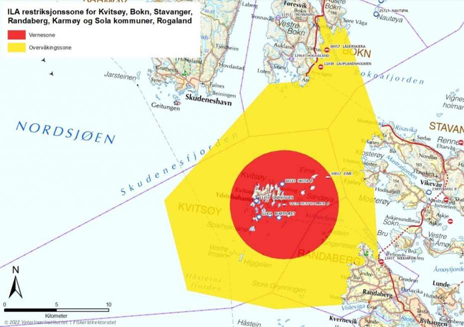Mattilsynet har i dag innført restriksjoner for bekjempelse av infeksiøs lakseanemi (ILA) i Kvitsøy, Bokn, Stavanger, Randaberg, Karmøy og Sola kommuner.