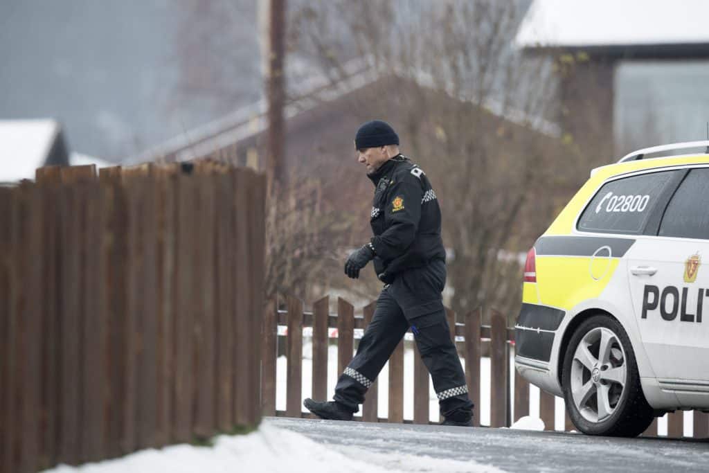 Politiet på stedet der den 16 år gamle jenta ble drept på Vinstra. Foto: Terje Pedersen / NTB scanpix