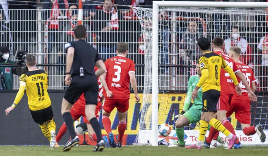 Marco Reus rundet 150 mål for Dortmund da de slo Union Berlin 3-0 i tysk Bundesliga søndag. Med seieren tok Dortmund også innpå ligaleder Bayern München.
