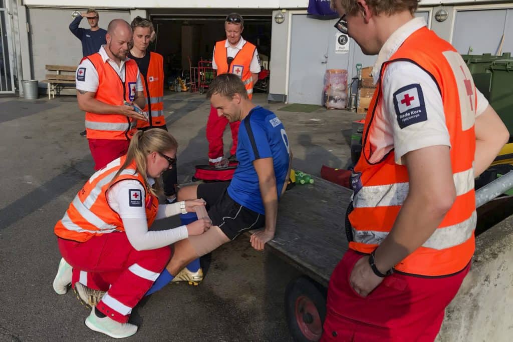 Men tidlig i kampen fikk barne- og familieminister Kjell Ingolf Ropstad (KrF) en skade i låret, en såkalt hamstringskade.