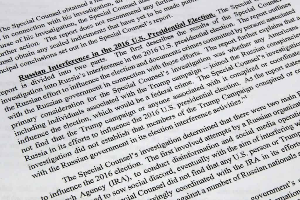 Politikk: Etter 22 måneders etterforskning leverte Mueller sin rapport til justisdepartementet, og ifølge et sammendrag som justisminister William Barr offentliggjorde, ble det ikke funnet bevis for noen sammensvergelse mellom Trump-kampanjen og Russland.