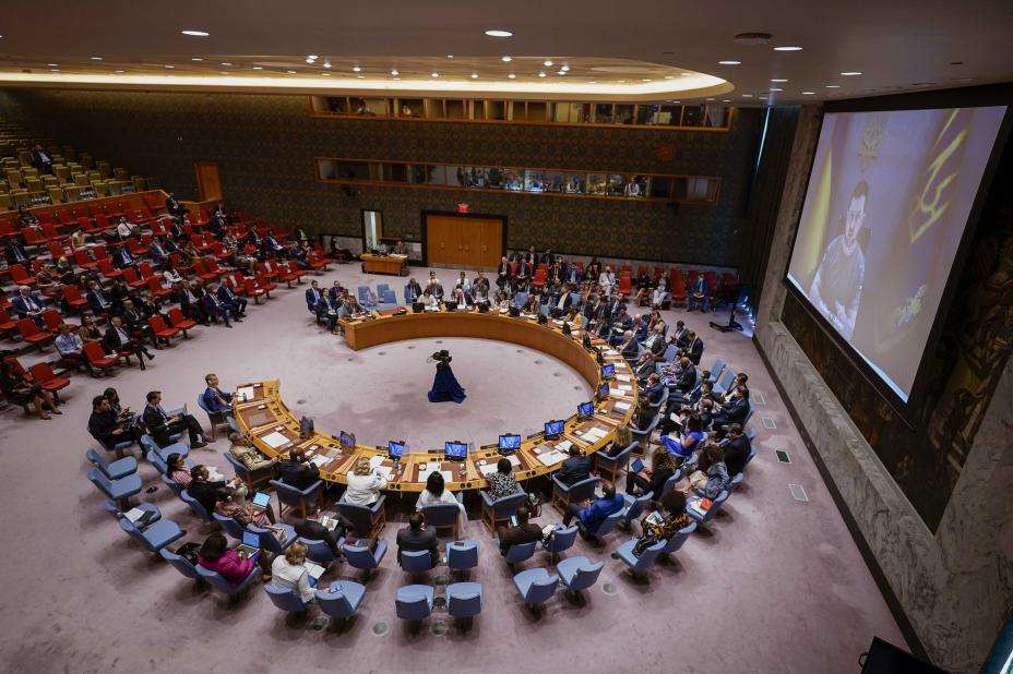 Russlands FN-ambassadør Vasilij Nebenzia baserte innvendingen på at han mente Zelenskyj burde delta på møtet personlig, ikke via video, og sa presidenten i stedet kunne ha fløyet til New York.