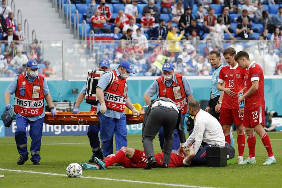 Russland-spiller til sykehus etter stygt fall – unngikk ryggmargsskade
