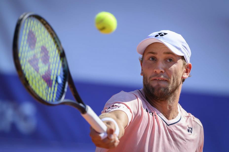 Casper Ruud vant i strake sett over Jaume Munar og er videre til semifinale i Gstaad. Foto: Anthony Anex / Keystone via AP / NTB
