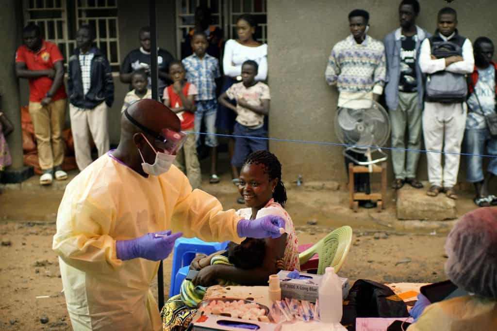 En sykepleier vaksinerer et barn mot ebola i Beni i det østlige Kongo. Epidemien har spredt seg til millionbyen Goma. Foto: Jerome Delay / AP / NTB scanpix