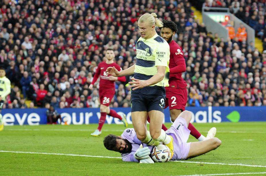 Haaland hadde foran søndagens storkamp ikke gått et Premier League-oppgjør uten målpoeng. Han sto også med scoring i sju strake seriekamper. Søndag stoppet Liverpools brasilianske sisteskanse Alisson ham fra å forlenge rekken. Han sto i veien for flere store Haaland-sjanser, blant annet med en svært sterk redning etter hvilen.