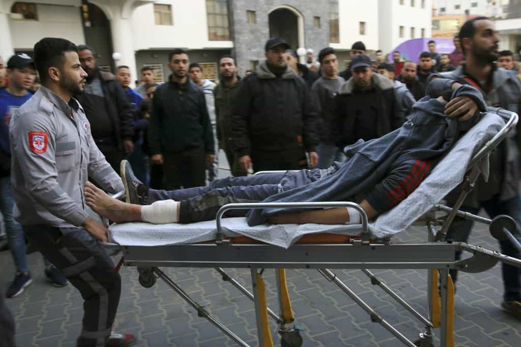 En såret palestinsk ungdom rulles bort etter at han ble skutt av israelske soldater på Gazastripen. Foto: Adel Hana / AP / NTB scanpix