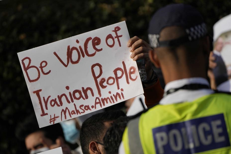 Politi brukte blant annet tåregass mot personer demonstrerte utenfor den iranske ambassaden i Paris søndag. I London ble flere politibetjenter skadd.