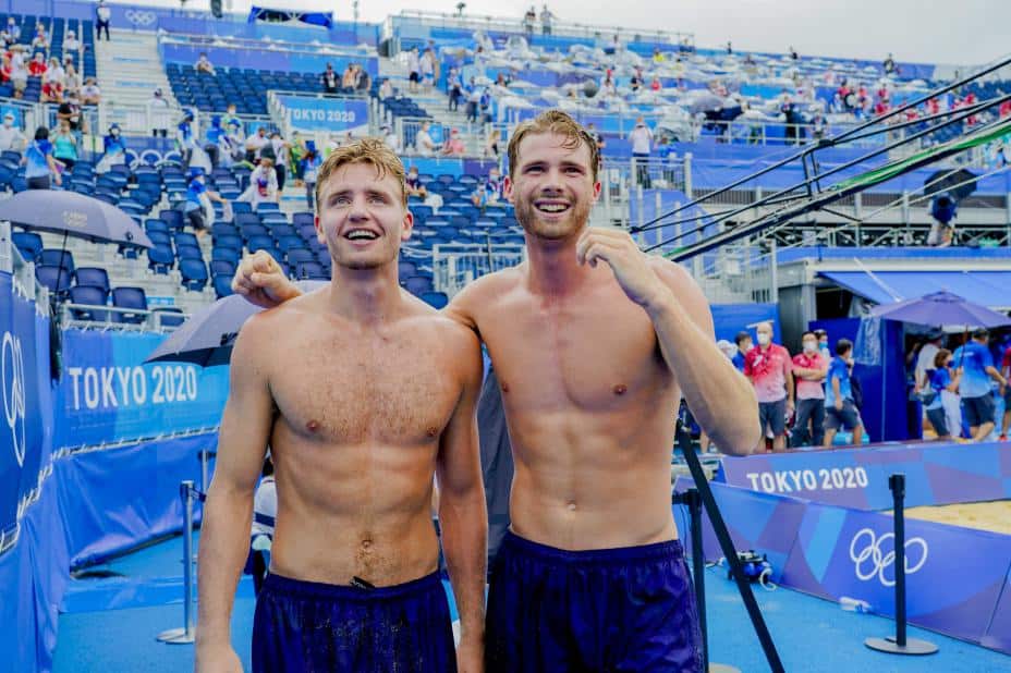 OL-vinnerne fra Tokyo sist sommer startet verdenstourturneringen med to seirer torsdag. Først ble østerrikerne Robin Seid og Philipp Waller slått 2-0 (21-17, 21-14), og deretter ble det 2-0 (21-19, 21-15) over nederlenderne Alexander Brouwer og Robert Meeuwsen.