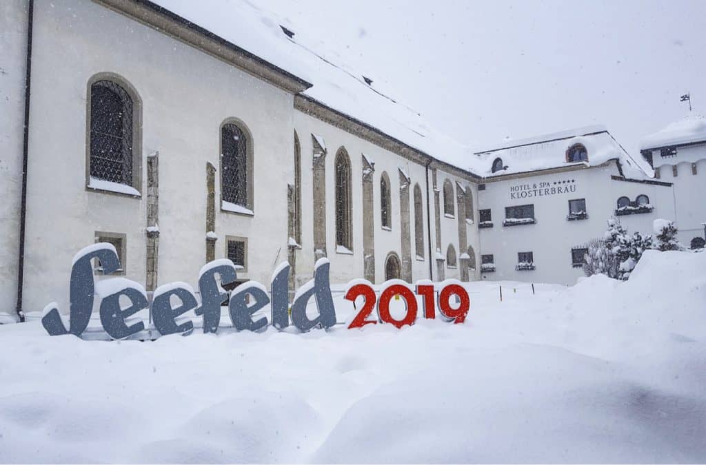 Seefeld ligger på snaut 1200 meter over havet. Det ble onsdag målt 1,95 meter snødybde inne i byen.