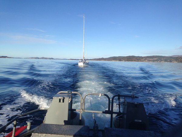 En uheldig seilbåt uten propell måtte tilkalle hjelp på grunn av manglende vind i seilene utenfor Stord i ettermiddag.
