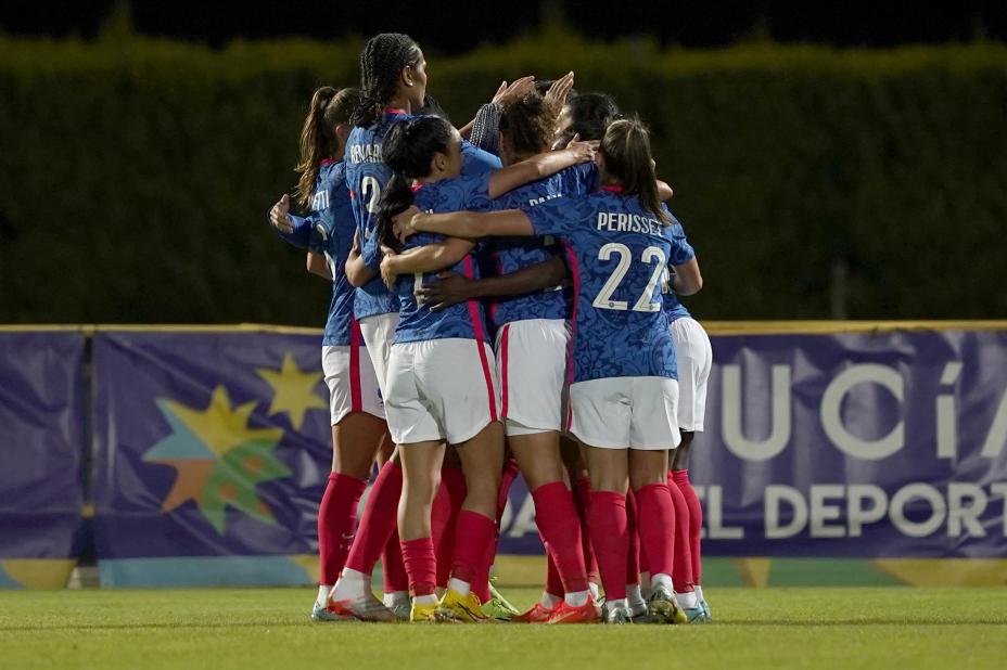 De franske landslagsjentene kunne juble da Viviane Asseyi headet inn 2-1-målet mot Norge fredag kveld. Foto: Rodrigo Freitas / NTB
