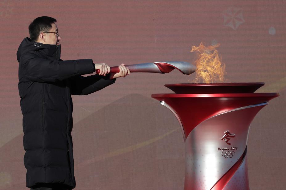 Den forkortede fakkelstafetten med OL-ilden ble satt i gang av Kinas visepresident Han Zheng i Beijing onsdag morgen.