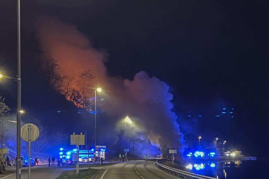 Søndag ettermiddag var veistrekningen fremdeles stengt, men politiet håper å få gjenåpnet veien i løpet av dagen. Det er skiltet omkjøring.